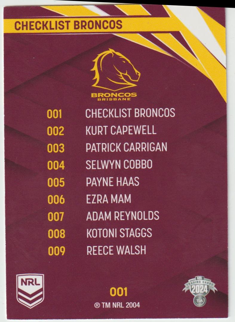 1 BRONCOS CHECKLIST 2024 NRL Traders