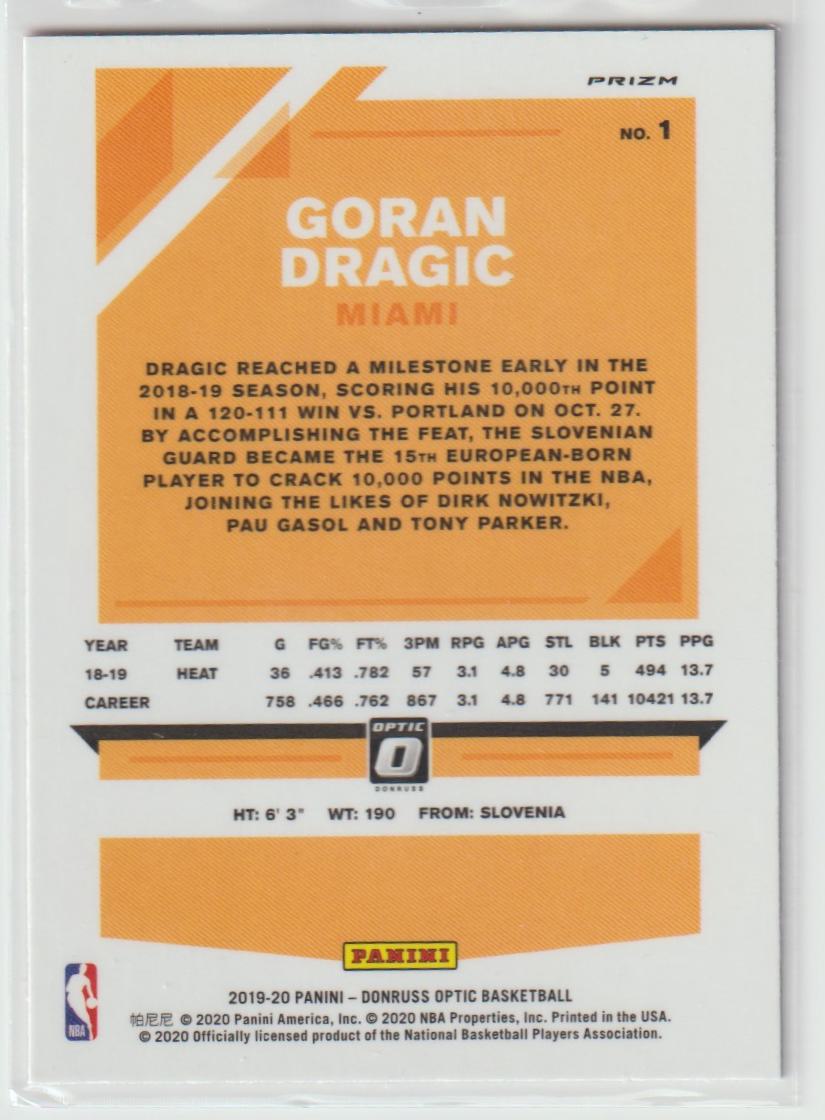 1 Goran Dragic - Miami Heat Hyper Pink Prizm 2019/20 Donruss Optic Basketball