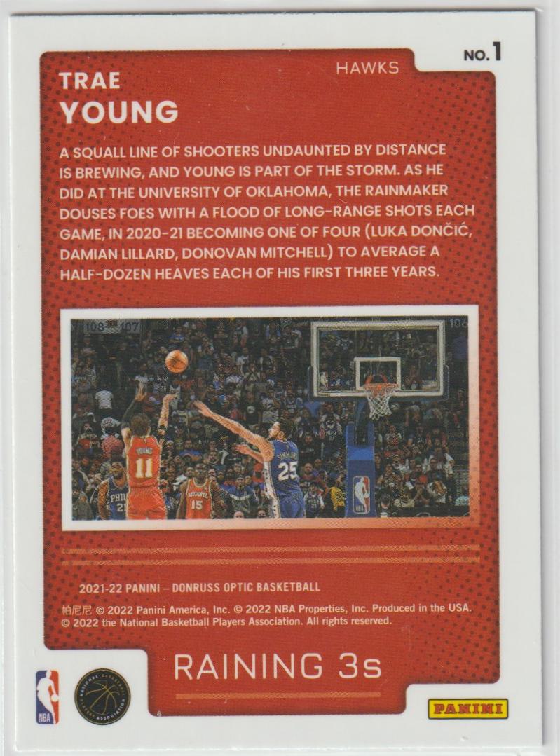 Raining 3s 1 Trae Young - Atlanta Hawks 2021/22 Donruss Optic Basketball