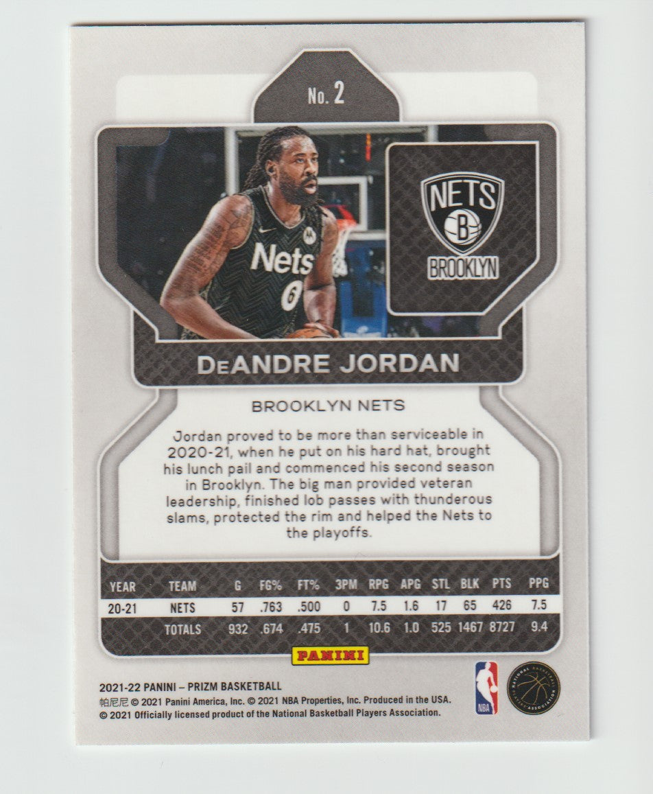 2 DeAndre Jordan - Brooklyn Nets 2021/22 Prizm Basketball