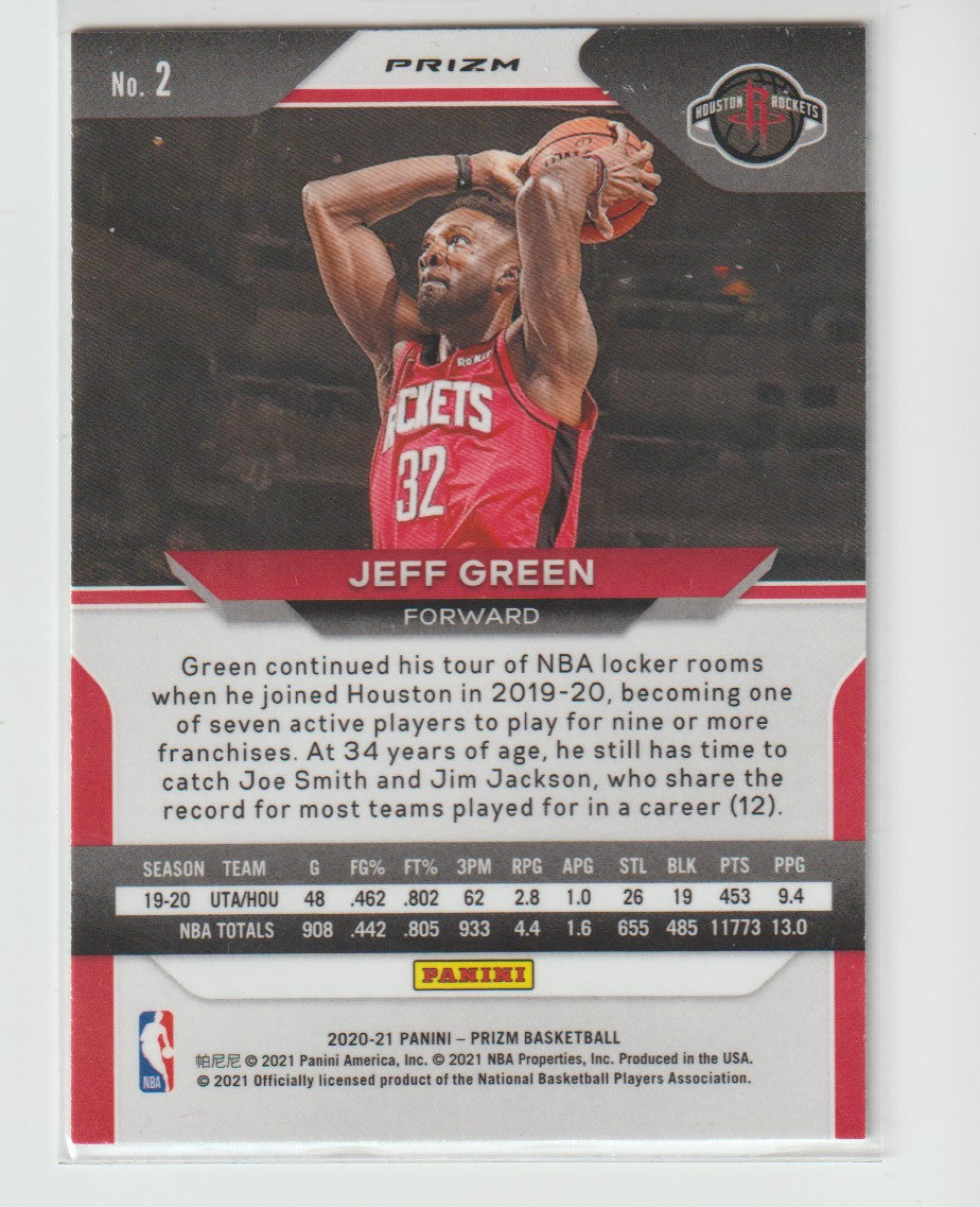 2 Jeff Green - Houston Rockets Green Prizm 2020/21 Prizm Basketball
