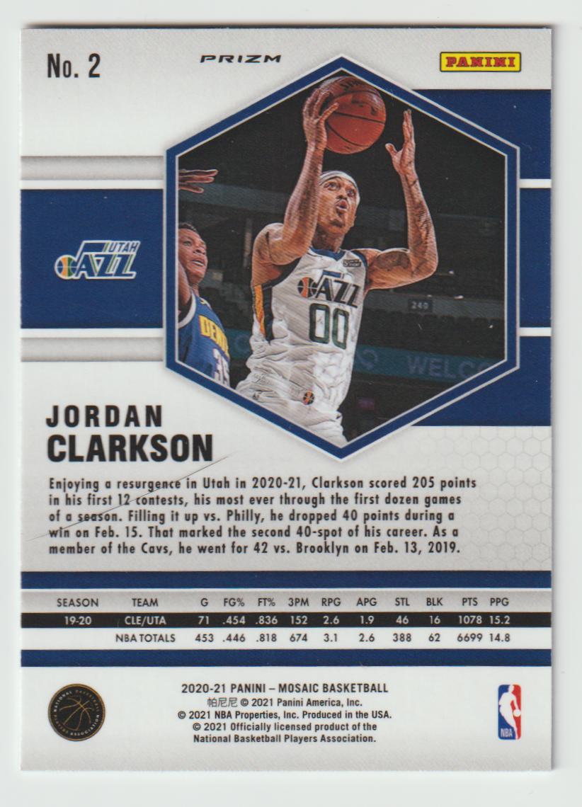 2 Jordan Clarkson - Utah Jazz Silver 2020/21 Mosaic Basketball