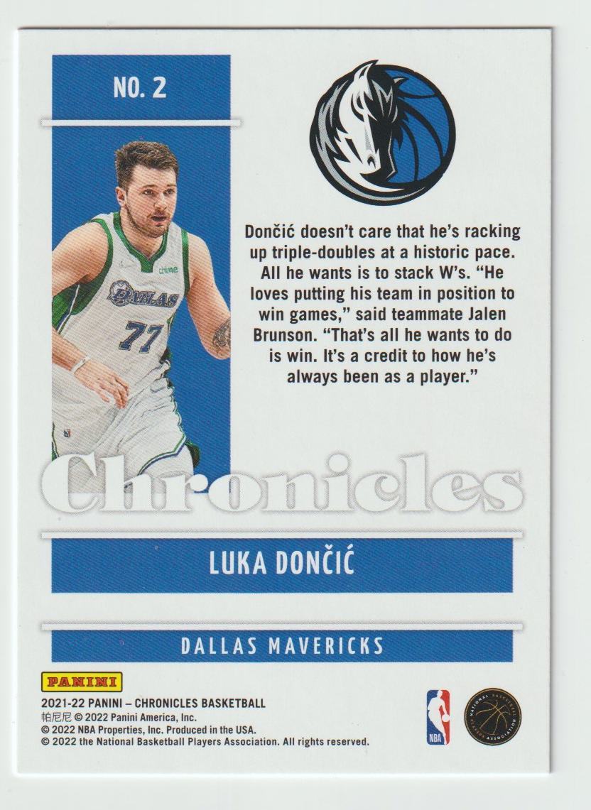 2 Luka Doncic - Dallas Mavericks Green 2021/22 Chronicles Basketball