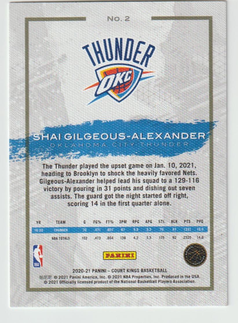 2 Shai Gilgeous-Alexander - Oklahoma City Thunder 2020/21 Court Kings Basketball
