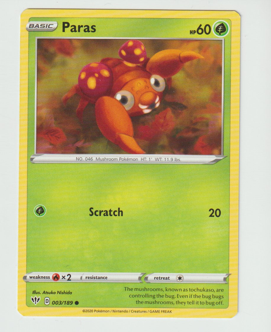003/189 Paras Common 2020 Sword & Shield: Darkness Ablaze