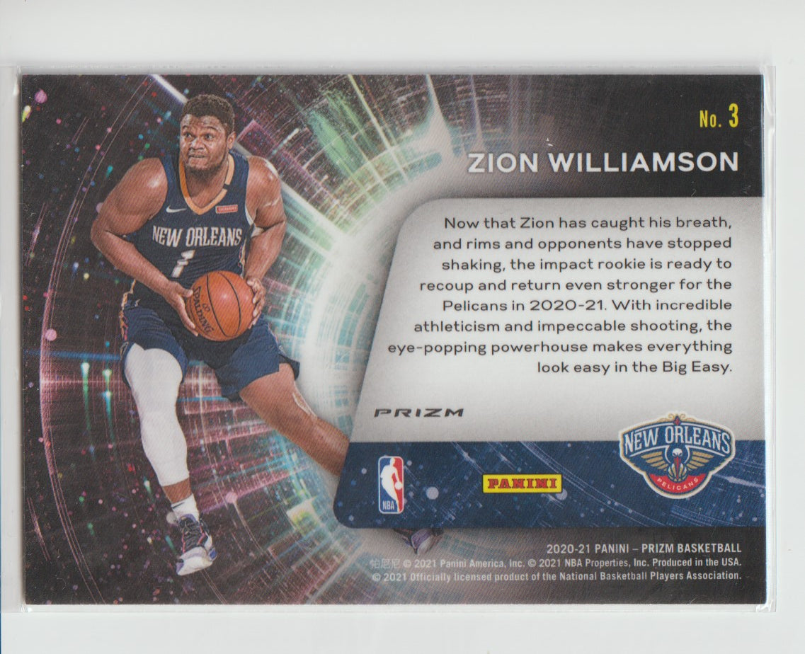 Sophomore Stars 3 Zion Williamson - New Orleans Pelicans Silver Prizm 2020/21 Prizm Basketball