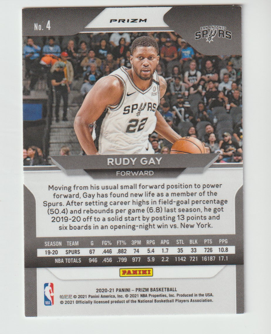 4 Rudy Gay - San Antonio Spurs Red Ice Prizm 2020/21 Prizm Basketball