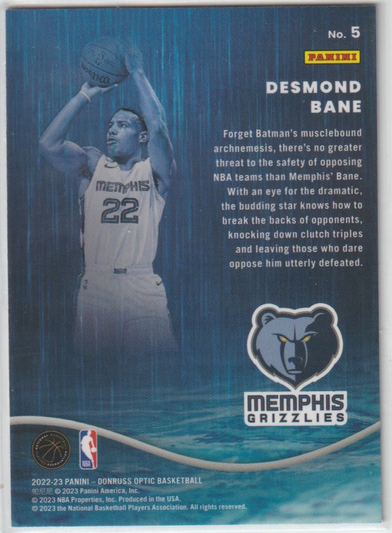 Raining 3s 5 Desmond Bane - Memphis Grizzlies 2022/23 Donruss Optic Basketball