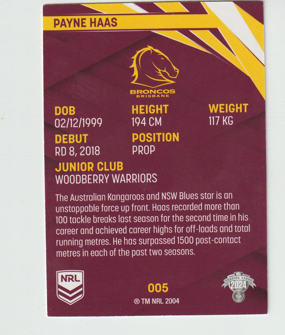5 PAYNE HAAS 2024 NRL Traders