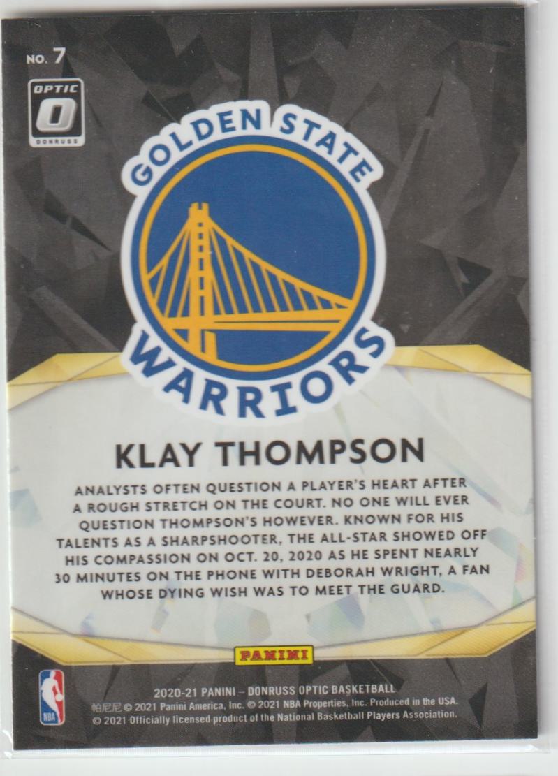 Winner Stays 7 Klay Thompson - Golden State Warriors 2020/21 Donruss Optic Basketball