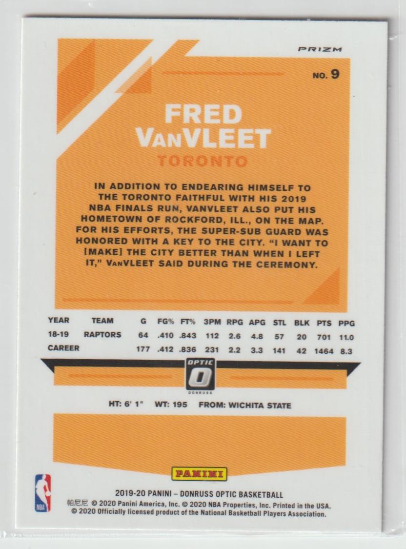 9 Fred VanVleet - Toronto Raptors Hyper Pink Prizm 2019/20 Donruss Optic Basketball