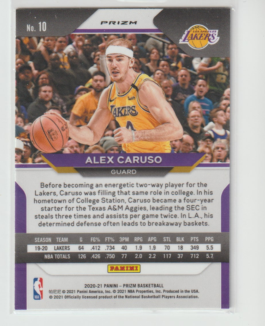 10 Alex Caruso - Los Angeles Lakers Green Prizm 2020/21 Prizm Basketball
