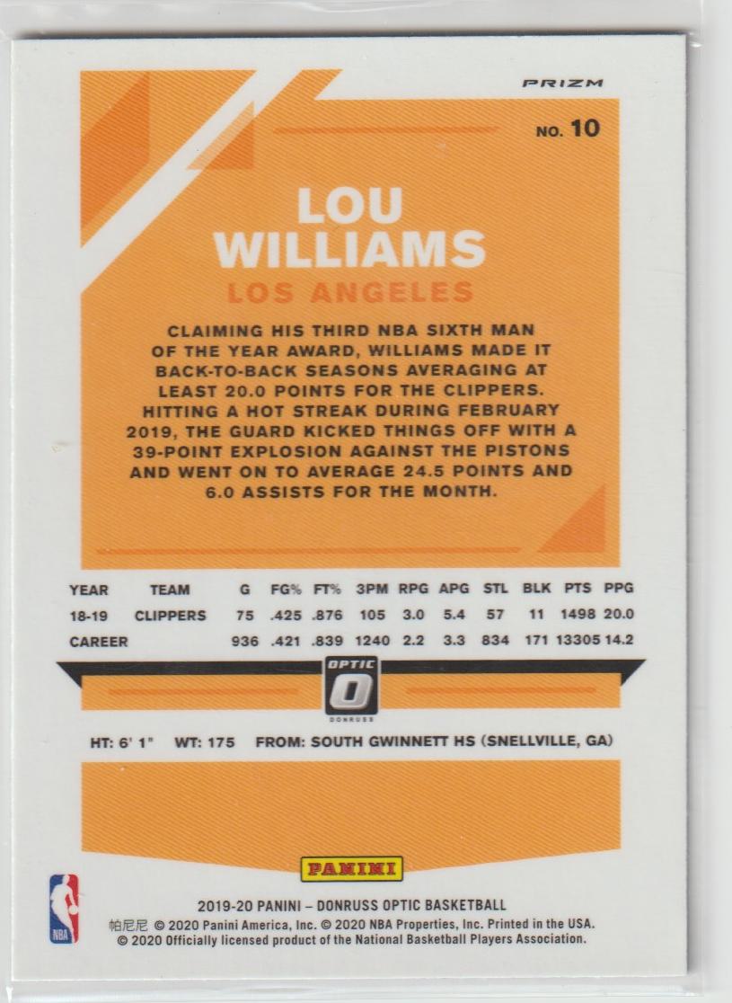 10 Lou Williams - Los Angeles Clippers Purple 2019/20 Donruss Optic Basketball