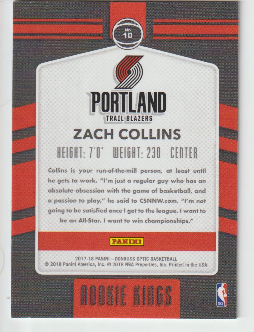 Rookie Kings 10 Zach Collins - Portland Trail Blazers 2017/18 Donruss Optic Basketball