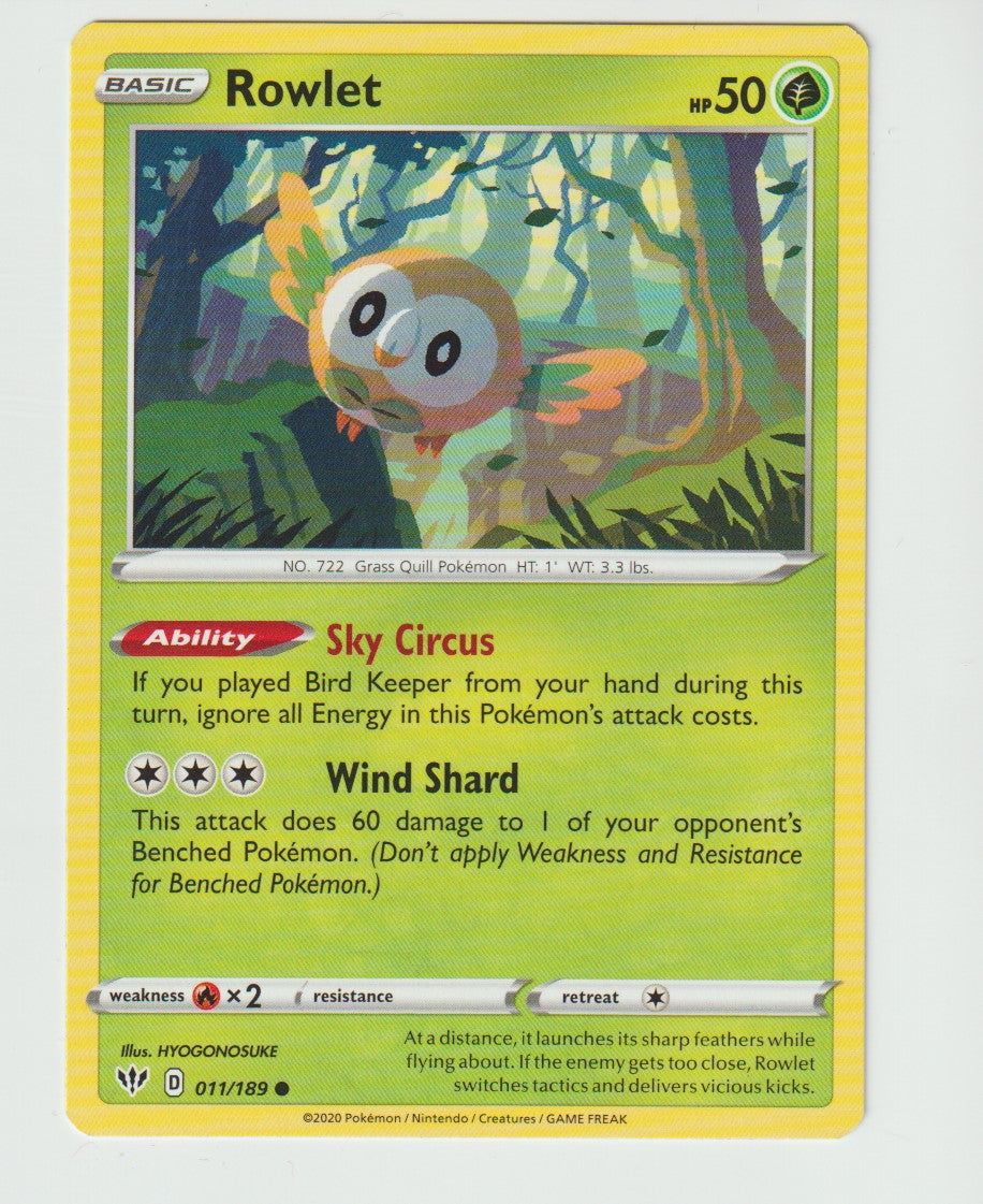 011/189 Rowlet Common 2020 Sword & Shield: Darkness Ablaze