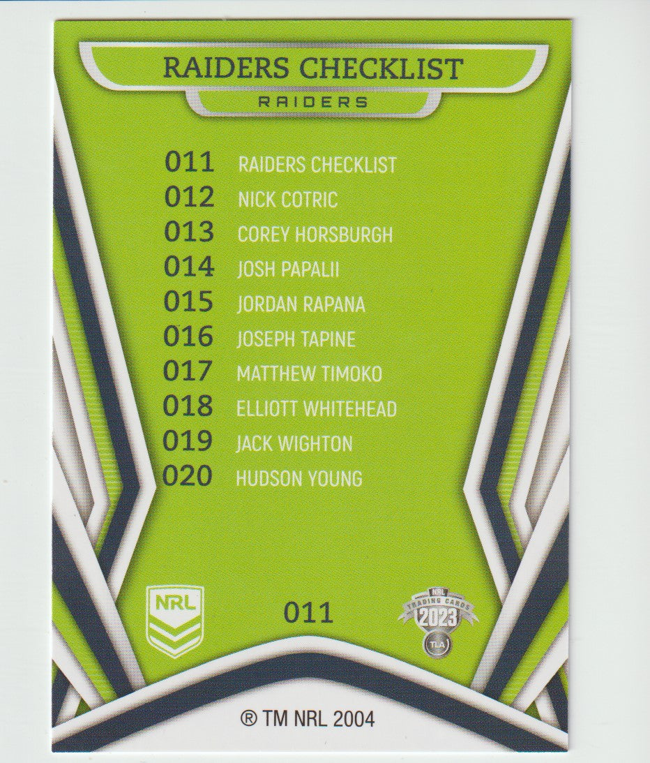 11 RAIDERS CHECKLIST 2023 NRL Traders