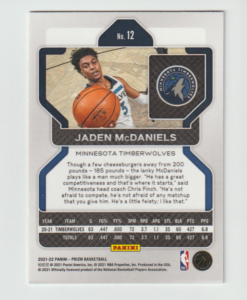 12 Jaden McDaniels - Minnesota Timberwolves 2021/22 Prizm Basketball