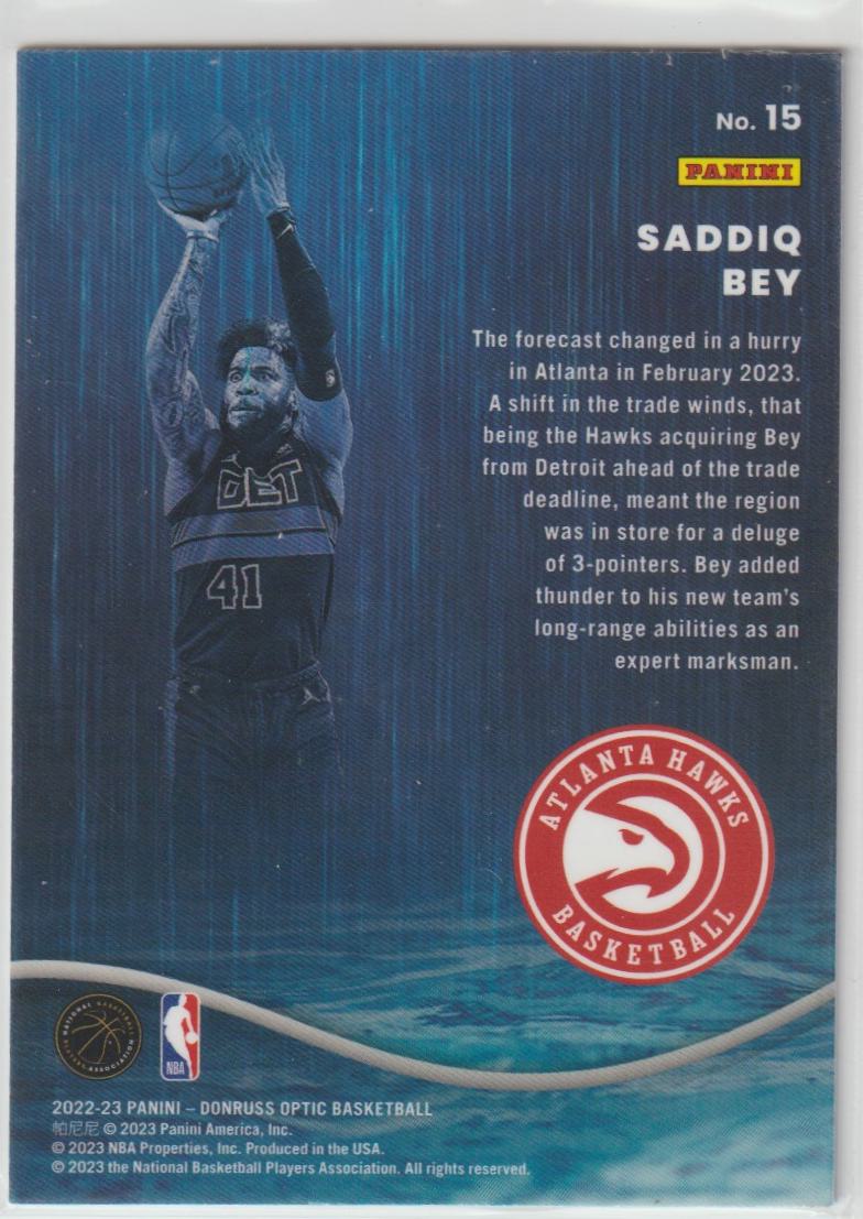 Raining 3s 15 Saddiq Bey - Atlanta Hawks 2022/23 Donruss Optic Basketball