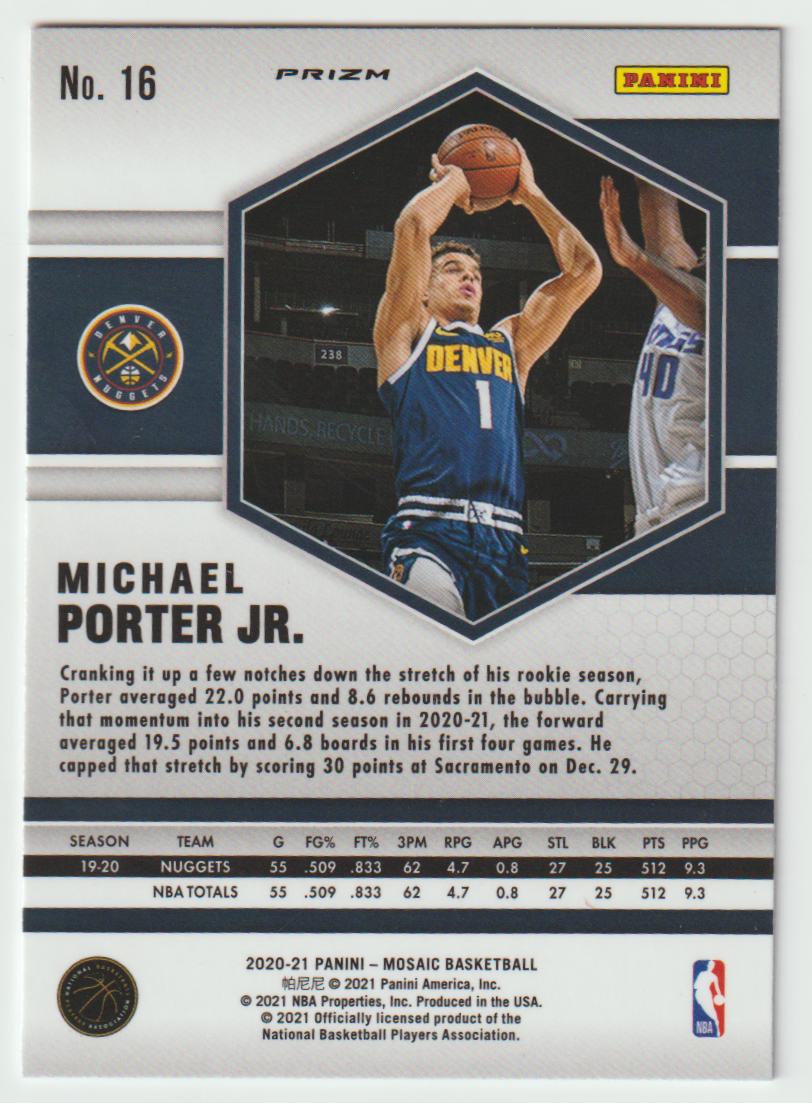 16 Michael Porter Jr. - Denver Nuggets Camo Pink 2020/21 Mosaic Basketball