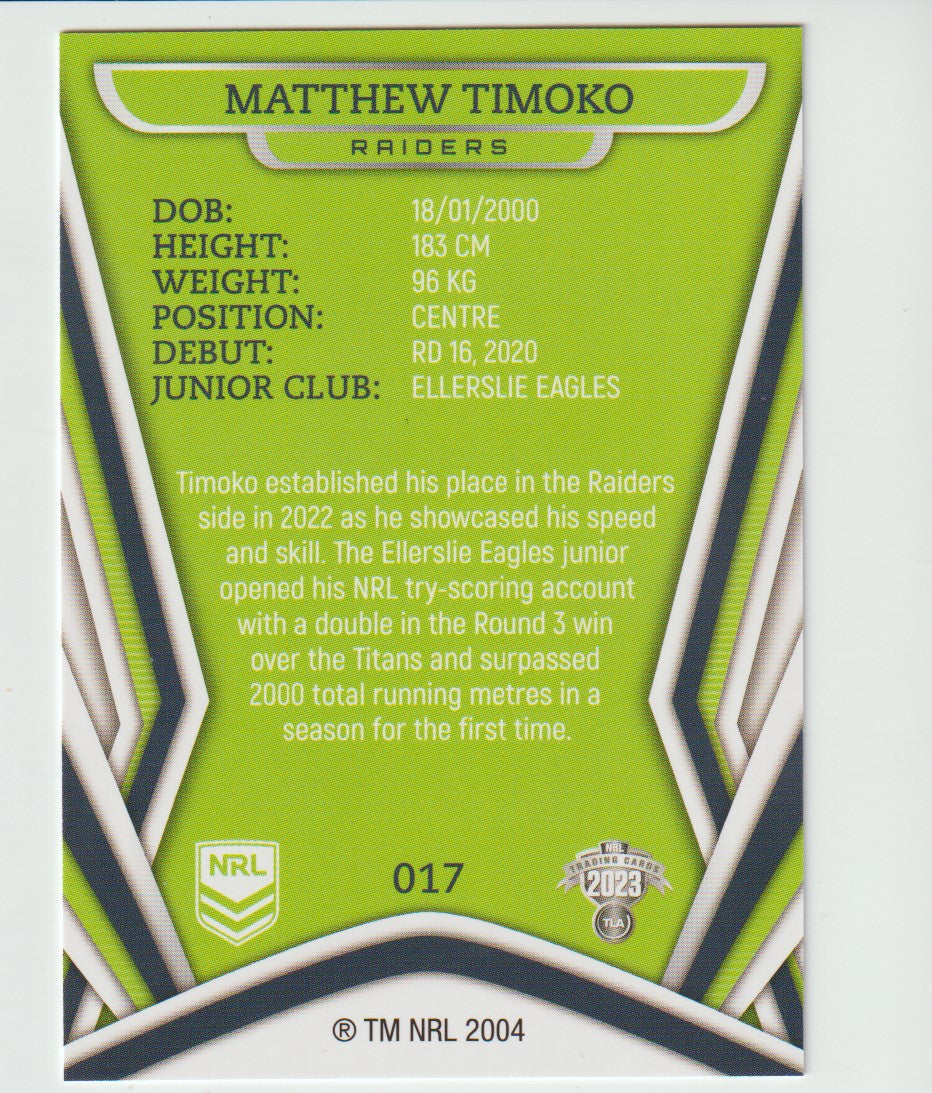 17 MATTHEW TIMOKO 2023 NRL Traders