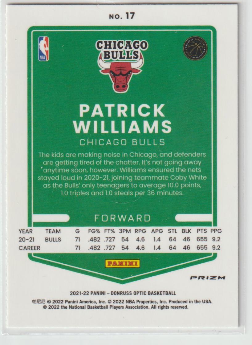 17 Patrick Williams - Chicago Bulls Red Pulsar 2021/22 Donruss Optic Basketball