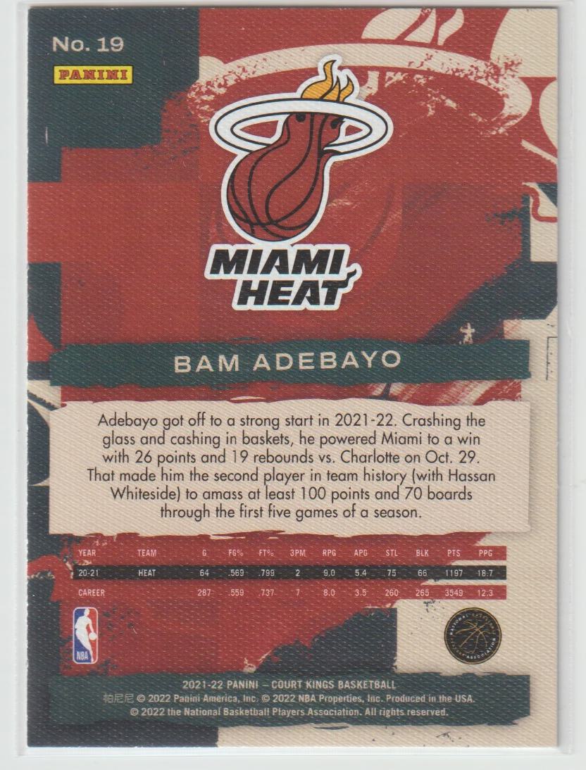 19 Bam Adebayo - Miami Heat 2021/22 Court Kings Basketball