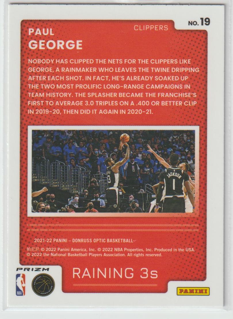 Raining 3s 19 Paul George - Los Angeles Clippers Holo 2021/22 Donruss Optic Basketball