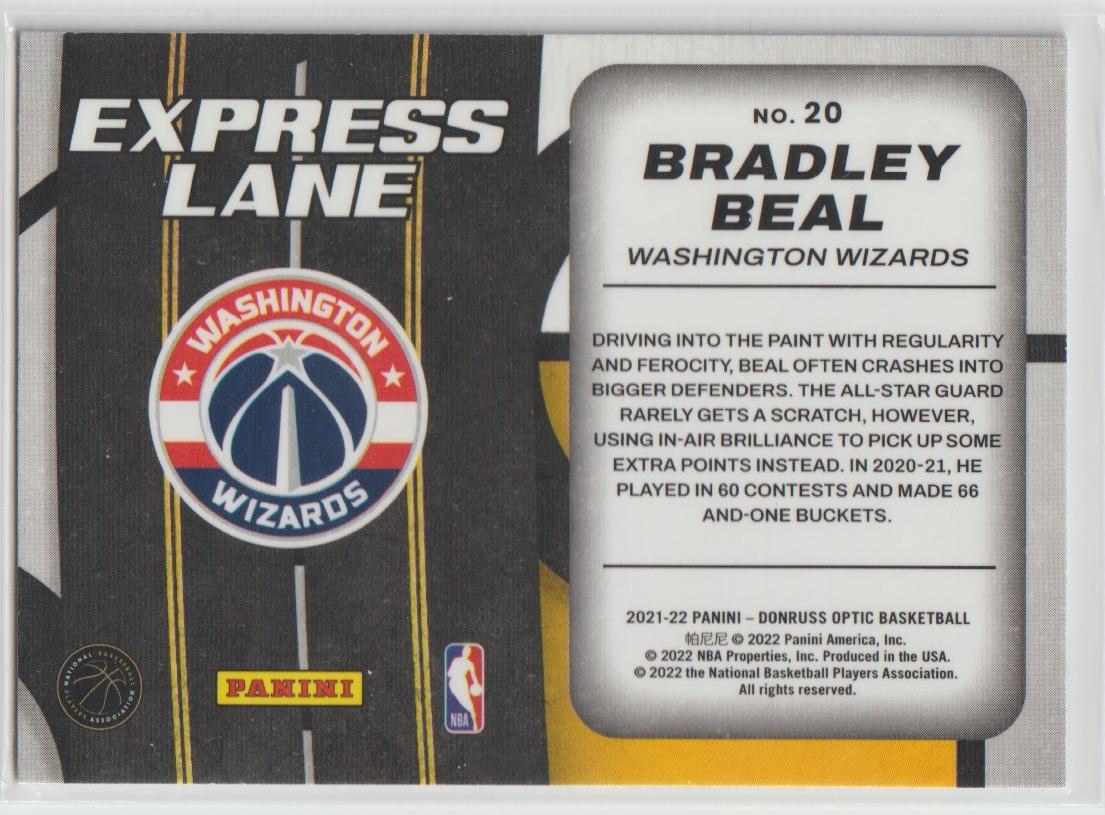 Express Lane 20 Bradley Beal - Washington Wizards 2021/22 Donruss Optic Basketball