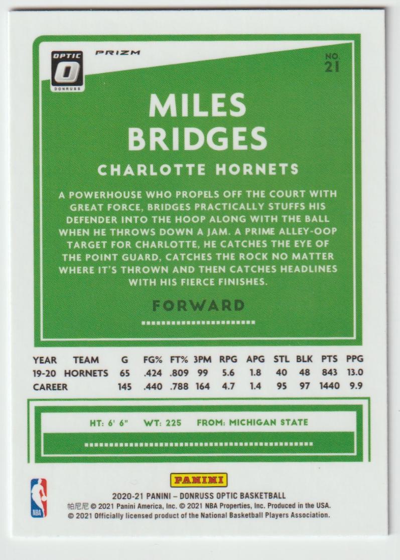 21 Miles Bridges - Charlotte Hornets Purple 2020/21 Donruss Optic Basketball