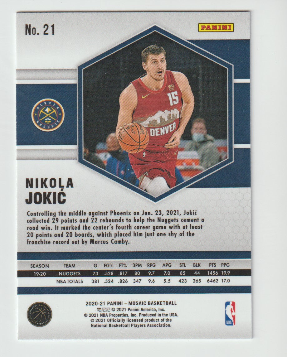 21 Nikola Jokic - Denver Nuggets 2020/21 Mosaic Basketball