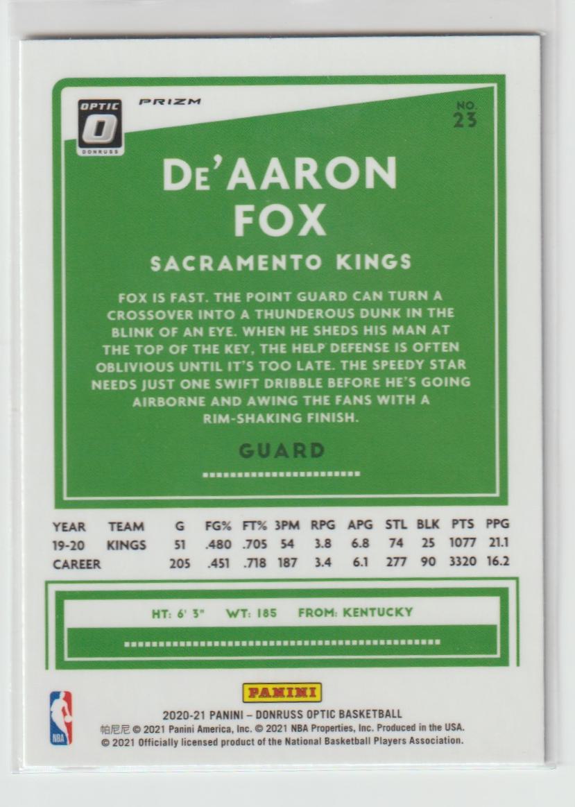 23 De'Aaron Fox - Sacramento Kings Holo 2020/21 Donruss Optic Basketball