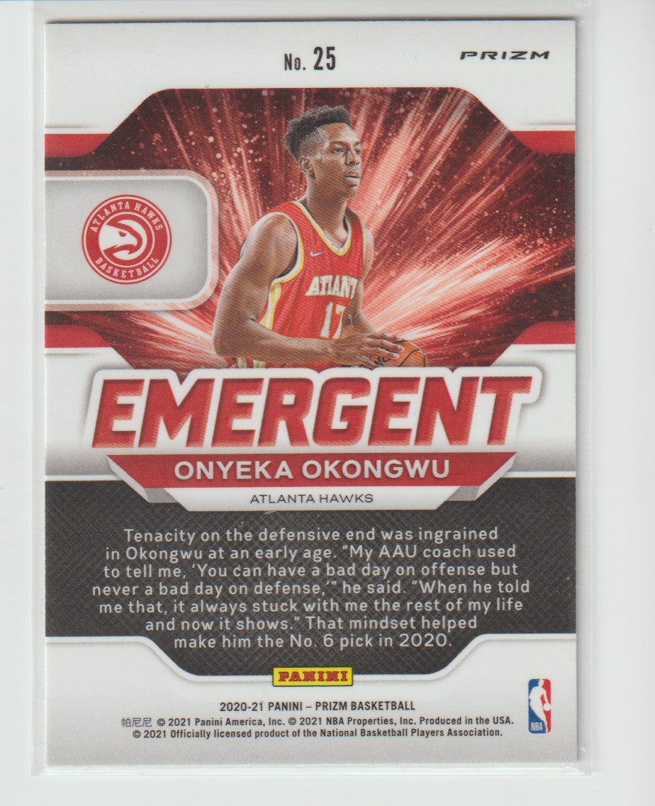 Emergent 25 Onyeka Okongwu - Atlanta Hawks Silver Prizm 2020/21 Prizm Basketball