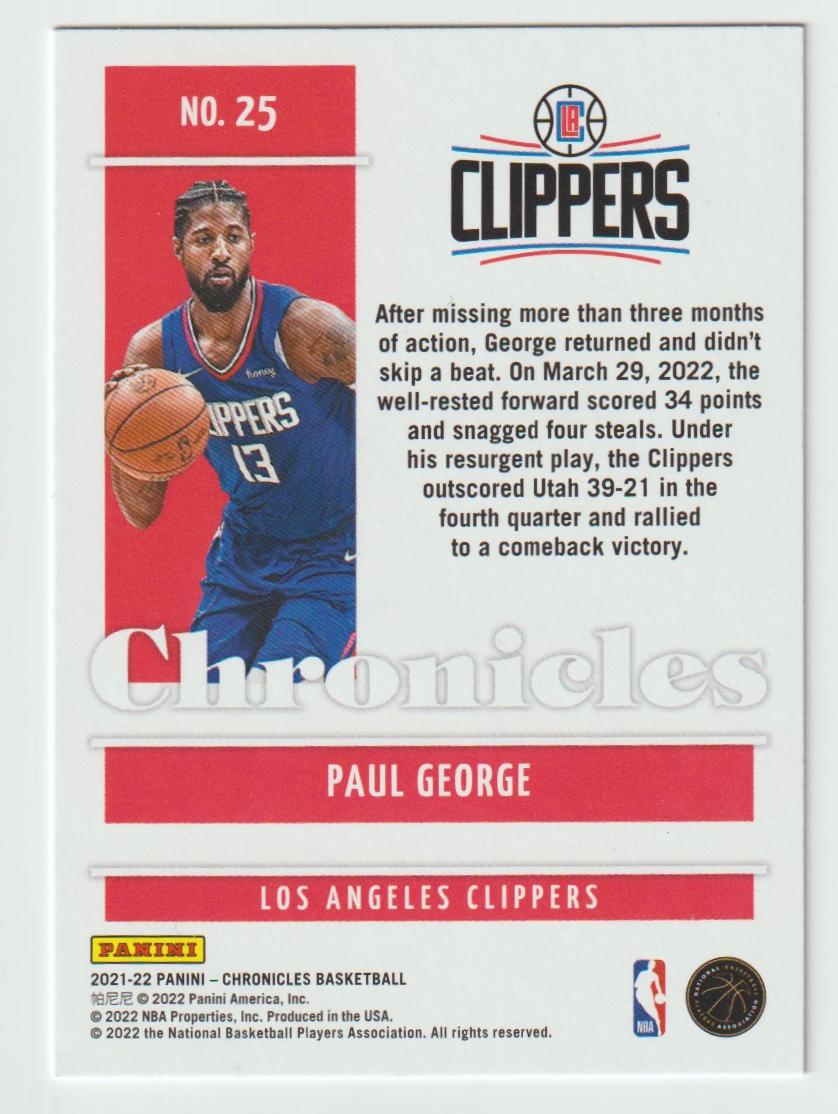 25 Paul George - Los Angeles Clippers 2021/22 Chronicles Basketball