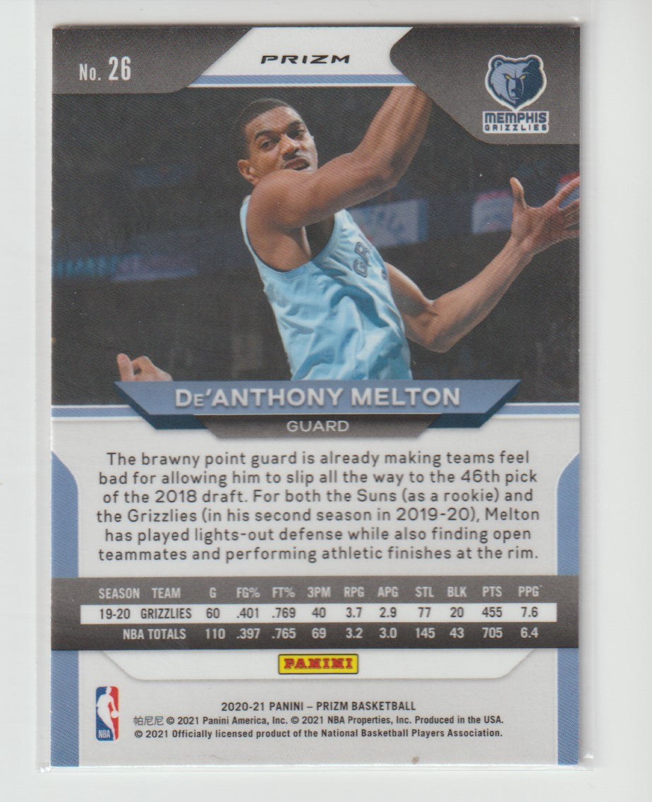 26 De'Anthony Melton - Memphis Grizzlies Red Ice Prizm 2020/21 Prizm Basketball