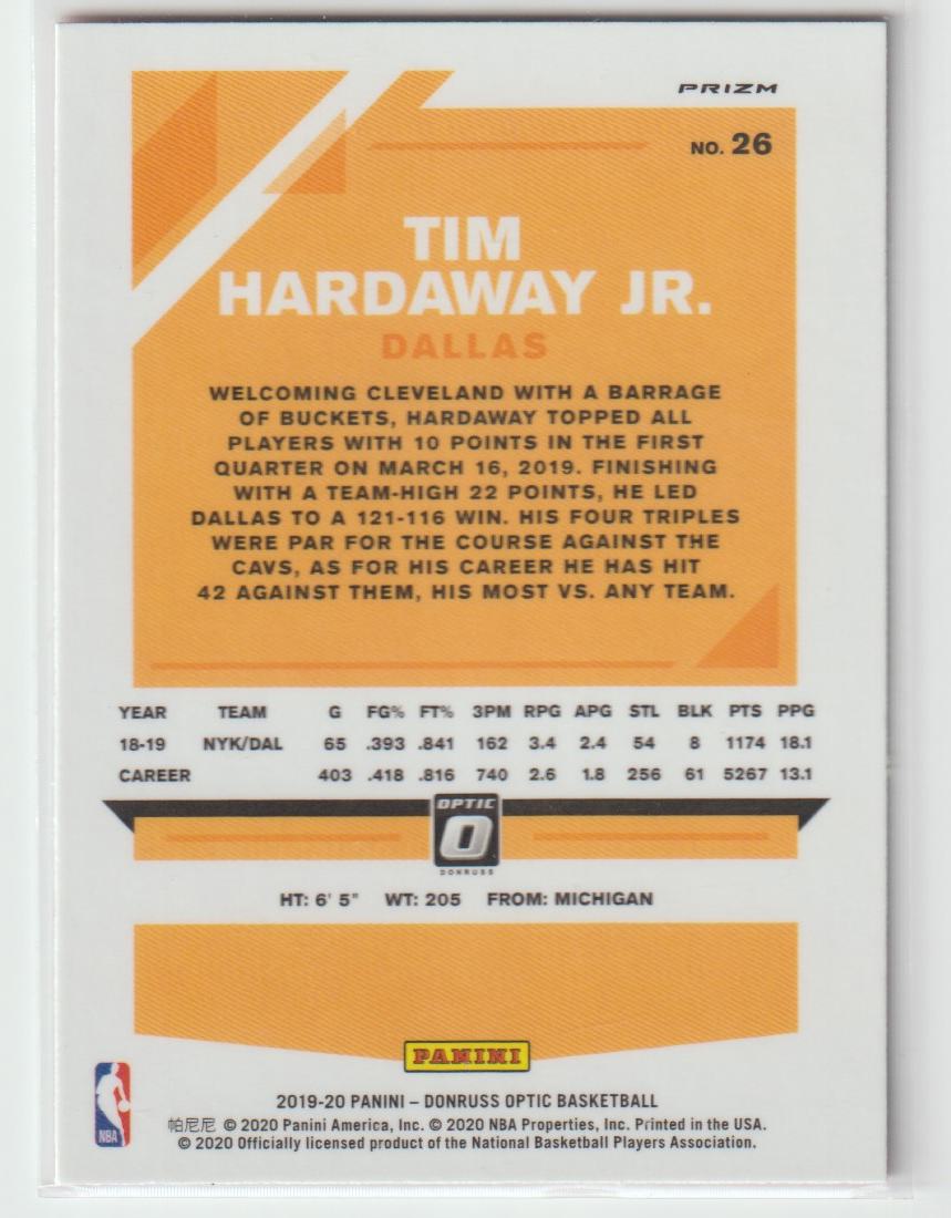 26 Tim Hardaway Jr. - Dallas Mavericks Hyper Pink Prizm 2019/20 Donruss Optic Basketball