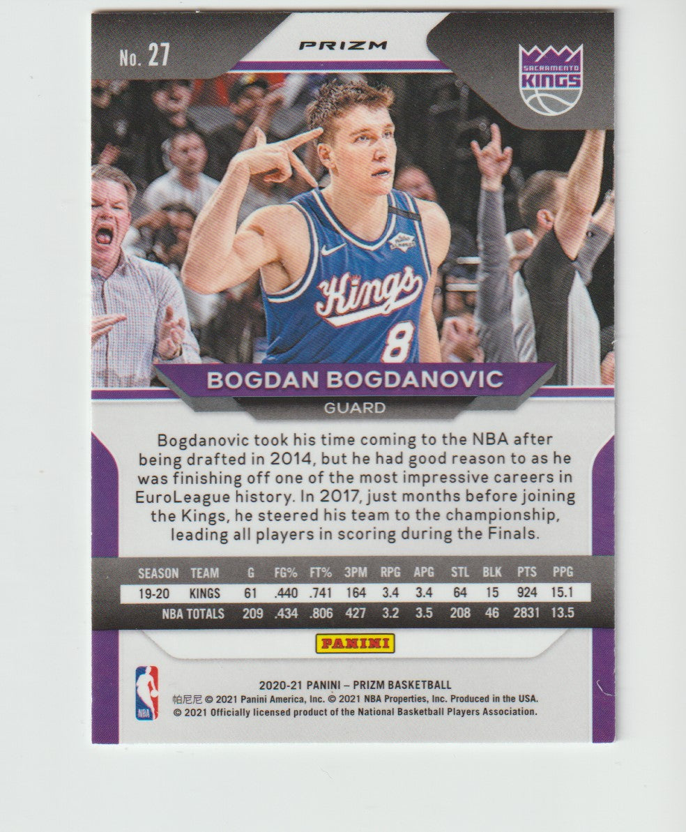 27 Bogdan Bogdanovic - Sacramento Kings Silver Prizm 2020/21 Prizm Basketball