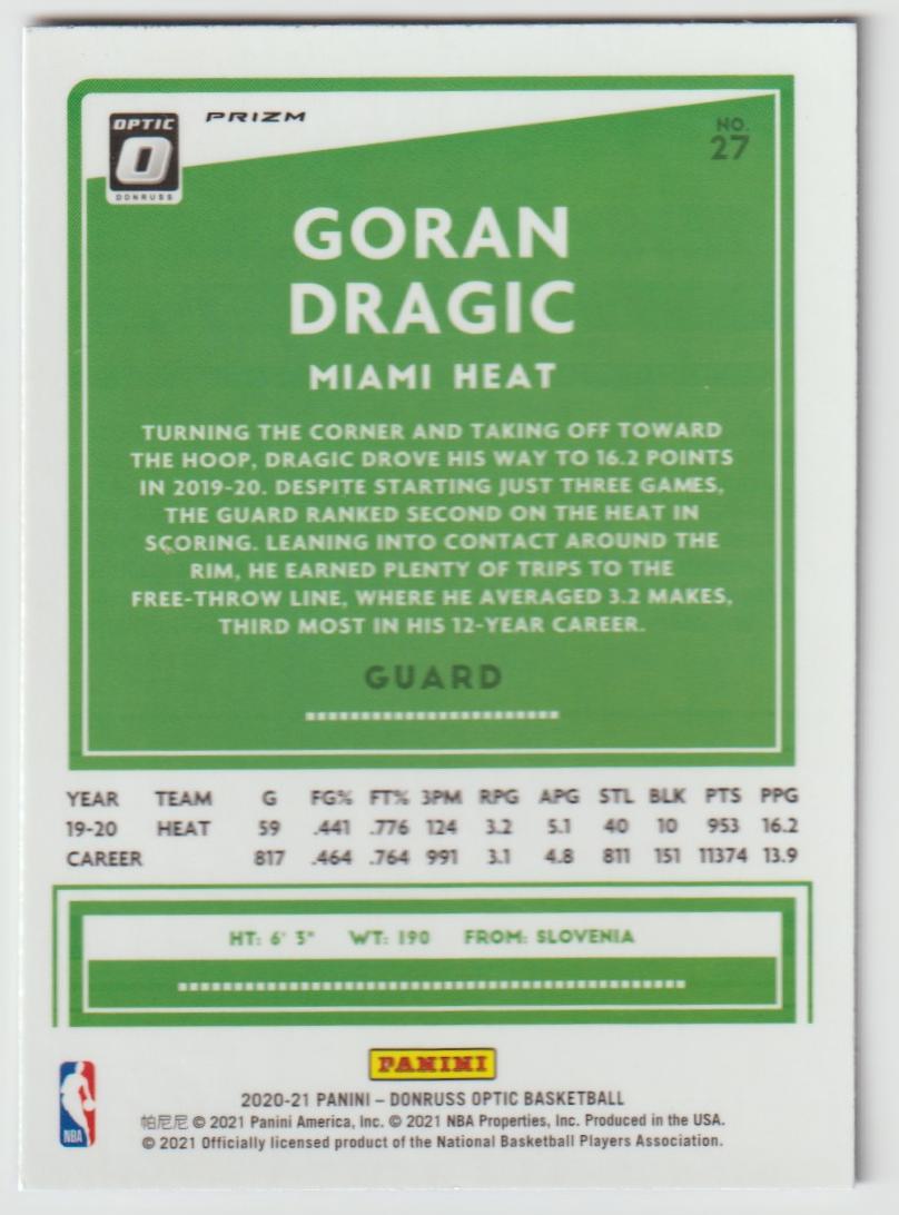 27 Goran Dragic - Miami Heat Purple Shock 2020/21 Donruss Optic Basketball