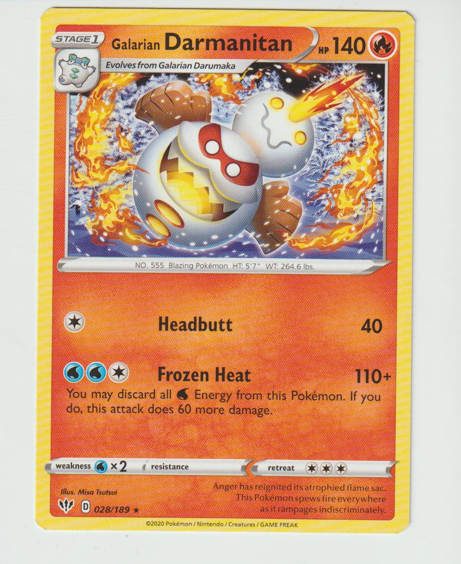 028/189 Galarian Darmanitan Rare 2020 Sword & Shield: Darkness Ablaze