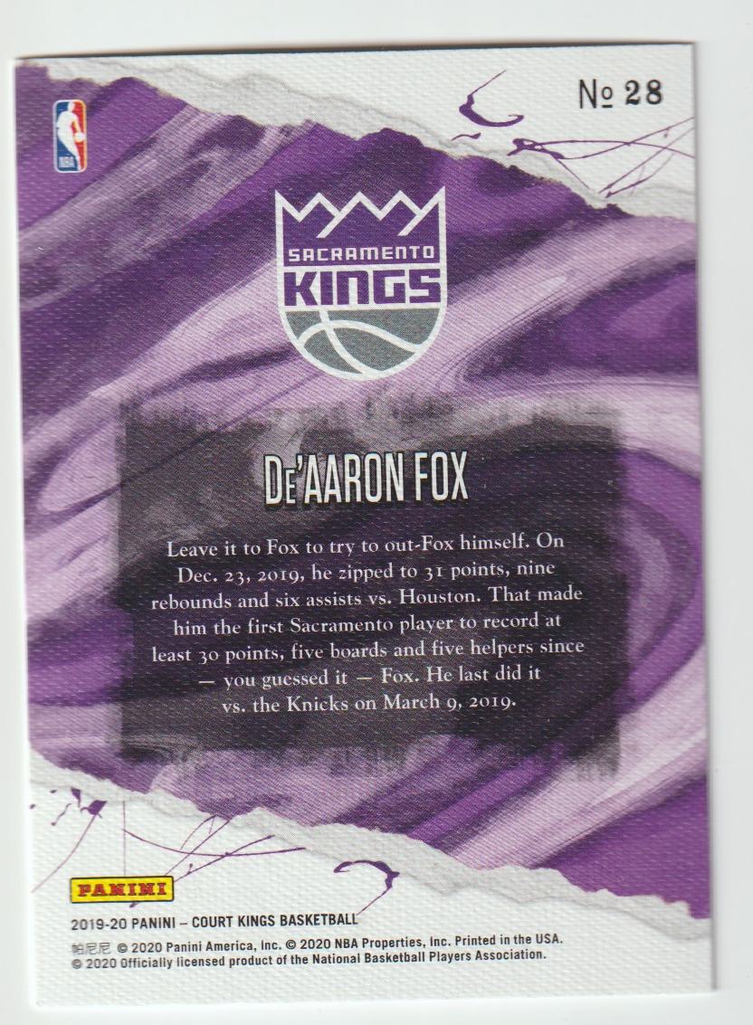 28 De'Aaron Fox - Sacramento Kings 2019/20 Court Kings Basketball