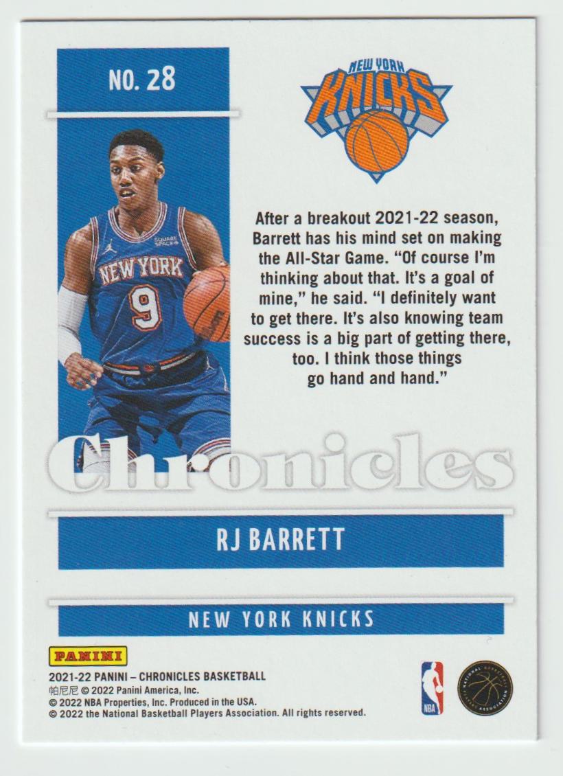 28 RJ Barrett - New York Knicks Green 2021/22 Chronicles Basketball