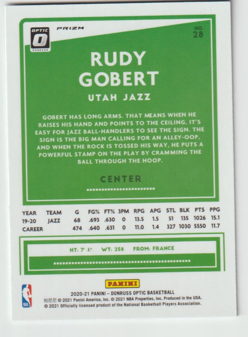 28 Rudy Gobert - Utah Jazz Blue Velocity 2020/21 Donruss Optic Basketball