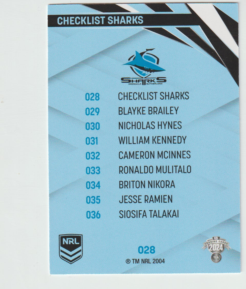 28 SHARKS CHECKLIST 2024 NRL Traders