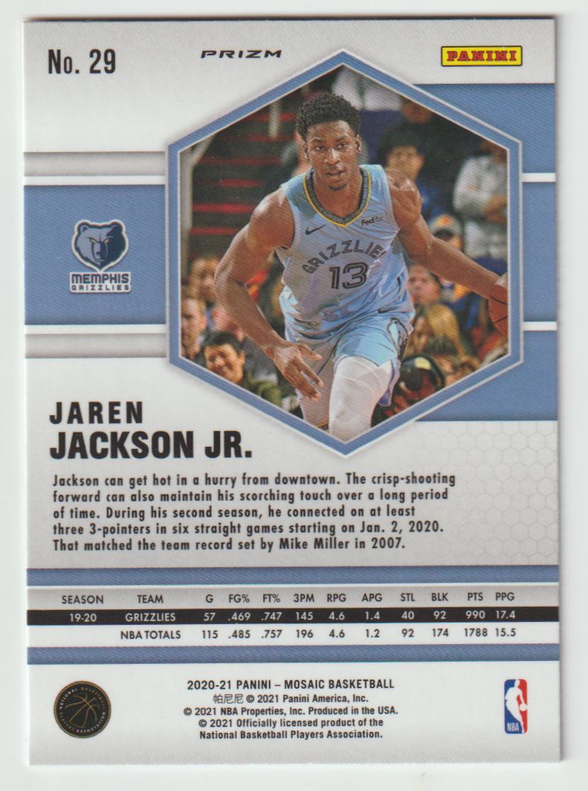 29 Jaren Jackson Jr. - Memphis Grizzlies Reactive Blue 2020/21 Mosaic Basketball