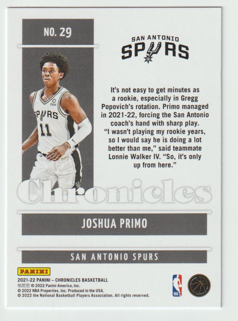 29 Joshua Primo - San Antonio Spurs 2021/22 Chronicles Basketball
