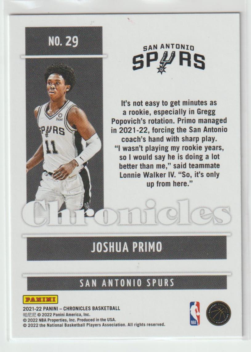 29 Joshua Primo - San Antonio Spurs Green 2021/22 Chronicles Basketball
