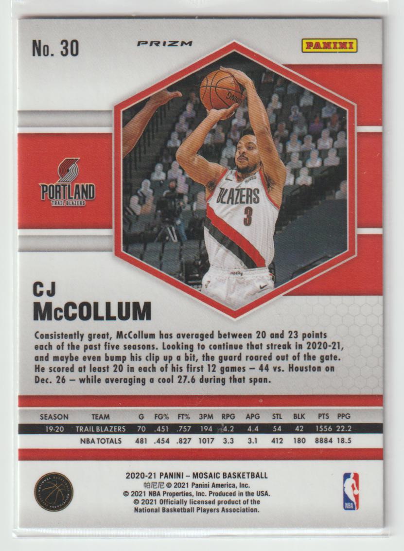 30 CJ McCollum - Portland Trail Blazers Camo Pink 2020/21 Mosaic Basketball