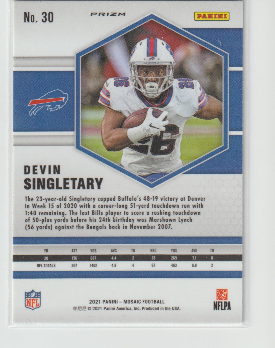 30 Devin Singletary - Buffalo Bills Silver Parallel 2021 Mosaic Football, Ebay