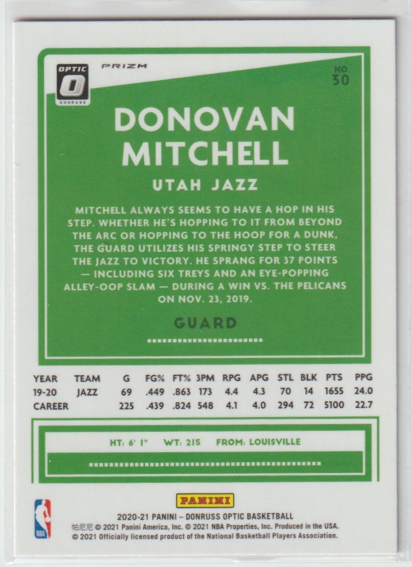 30 Donovan Mitchell - Utah Jazz Hyper Pink 2020/21 Donruss Optic Basketball