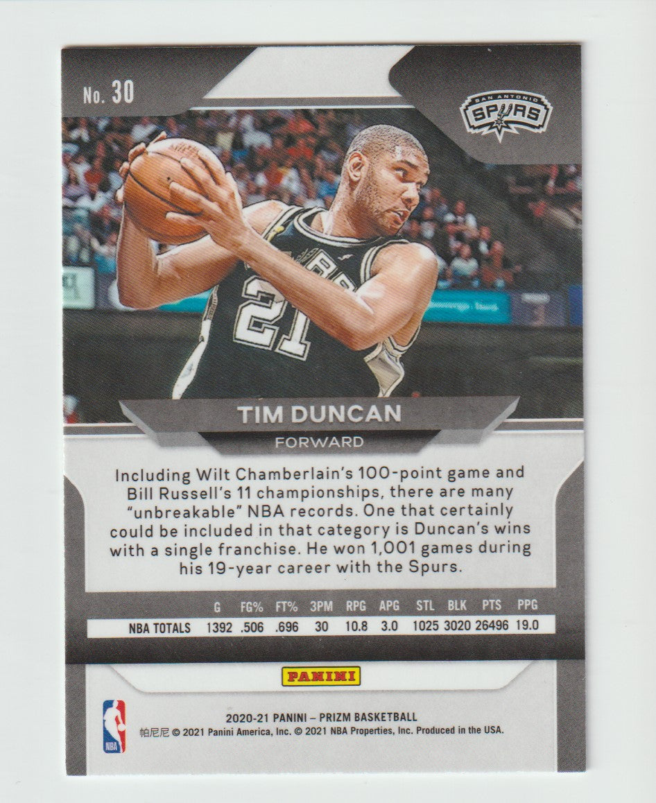30 Tim Duncan - San Antonio Spurs 2020/21 Prizm Basketball