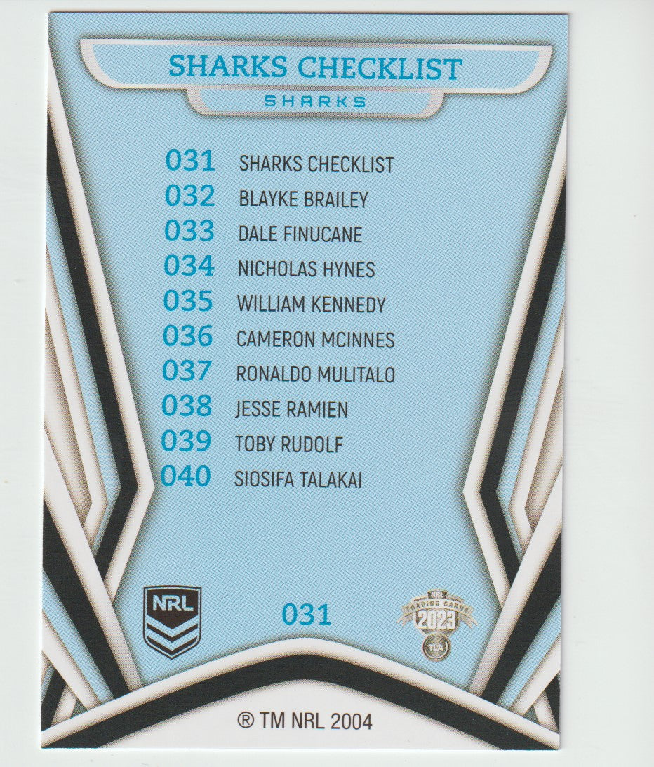31 SHARKS CHECKLIST 2023 NRL Traders